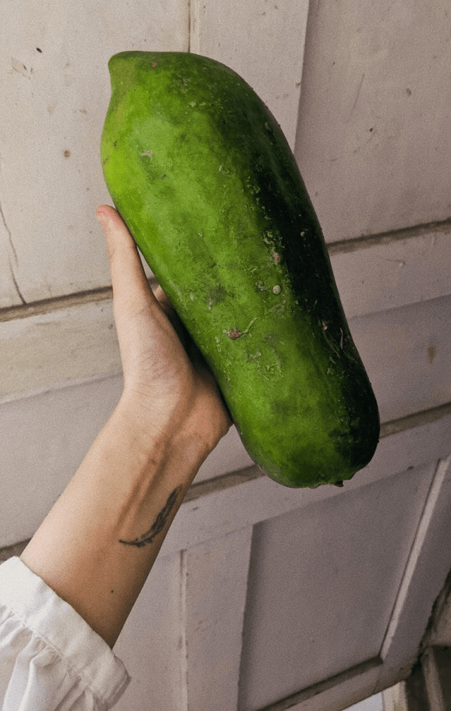 Đi từ trên cầu thang xuống, qua mỗi tầng lại mình lại nghe thấy các đề xuất 7749 món với đu đủ. ‘Đu đủ xanh thì làm nộm giòn tuyệt vời luôn’, ‘Nhà tôi thì ngâm mắm’, ‘Để chín mà ăn, nhà tôi mấy hôm chả có quả gì ăn’. Có bác hồ hởi trêu ‘Mai anh em có bữa bún chả rồi’. Chết cười.