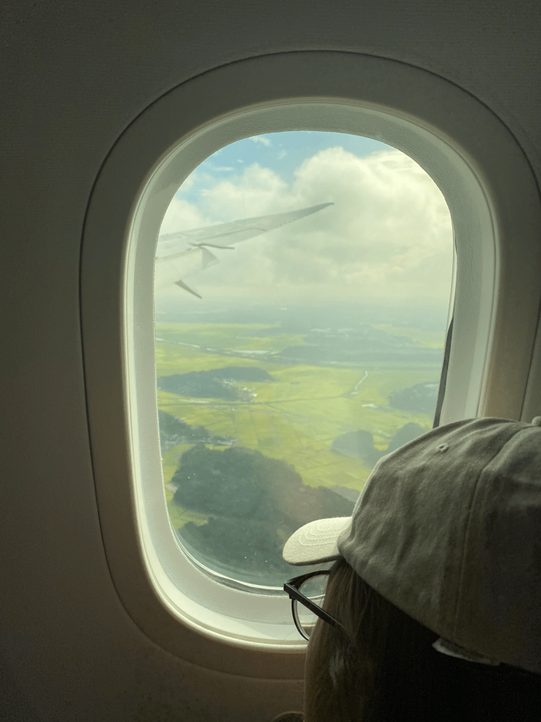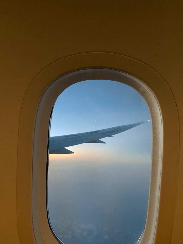 1:49pm: Trước ngày mình bay, Trà gửi podcast “Bay qua thời gian” của chị Nguyễn Thị Châu Giang, dặn mình nghe lúc ở trên máy bay. Mình dành khoảng thời gian transit dài ở Nhật, nằm nghe ở ghế chờ.