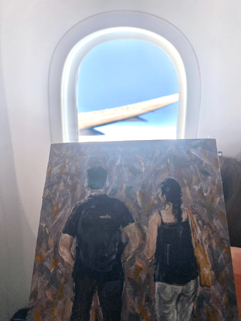 Mình quay sang bảo em “0:20 bay, 0:23 tới, tròn 36 tiếng”.