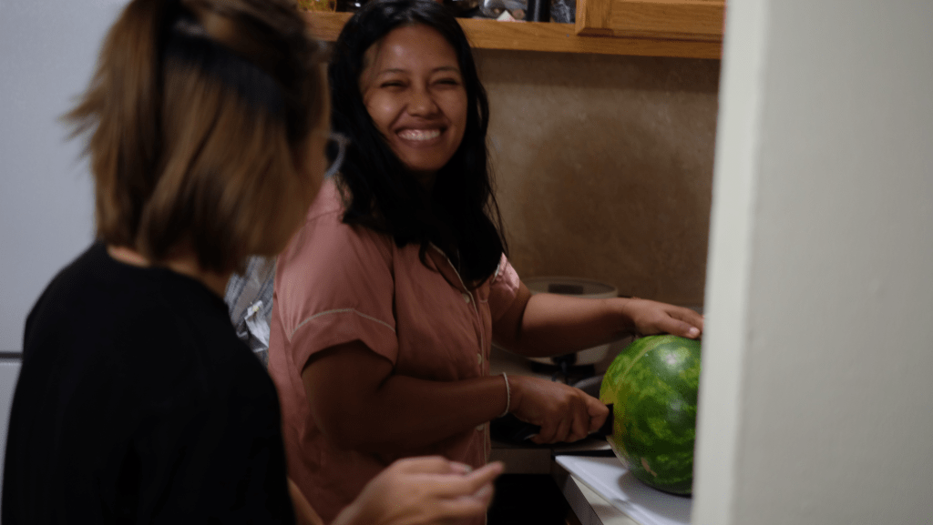 Lại nhớ tuần đầu chuyển nhà, tôi giữ lại những tấm bìa carton phẳng phiu, cắt cắt, tô tô làm lịch, ghi mấy lời nhắc to đùng treo trên tường. Mỗi lần Dwika mở cửa phòng, tôi lại nghe thấy tiếng cô bạn cười phá lên. Một tối cuối tuần khác, tôi lại lấy một tấm bìa, vẽ bức tranh nguệch ngoạc hình Dwika và tôi, treo ở phòng khách, kèm dòng “We keep this sisterhood in a (carton) photograph”. Bạn lại được phen cười sằng sặc.